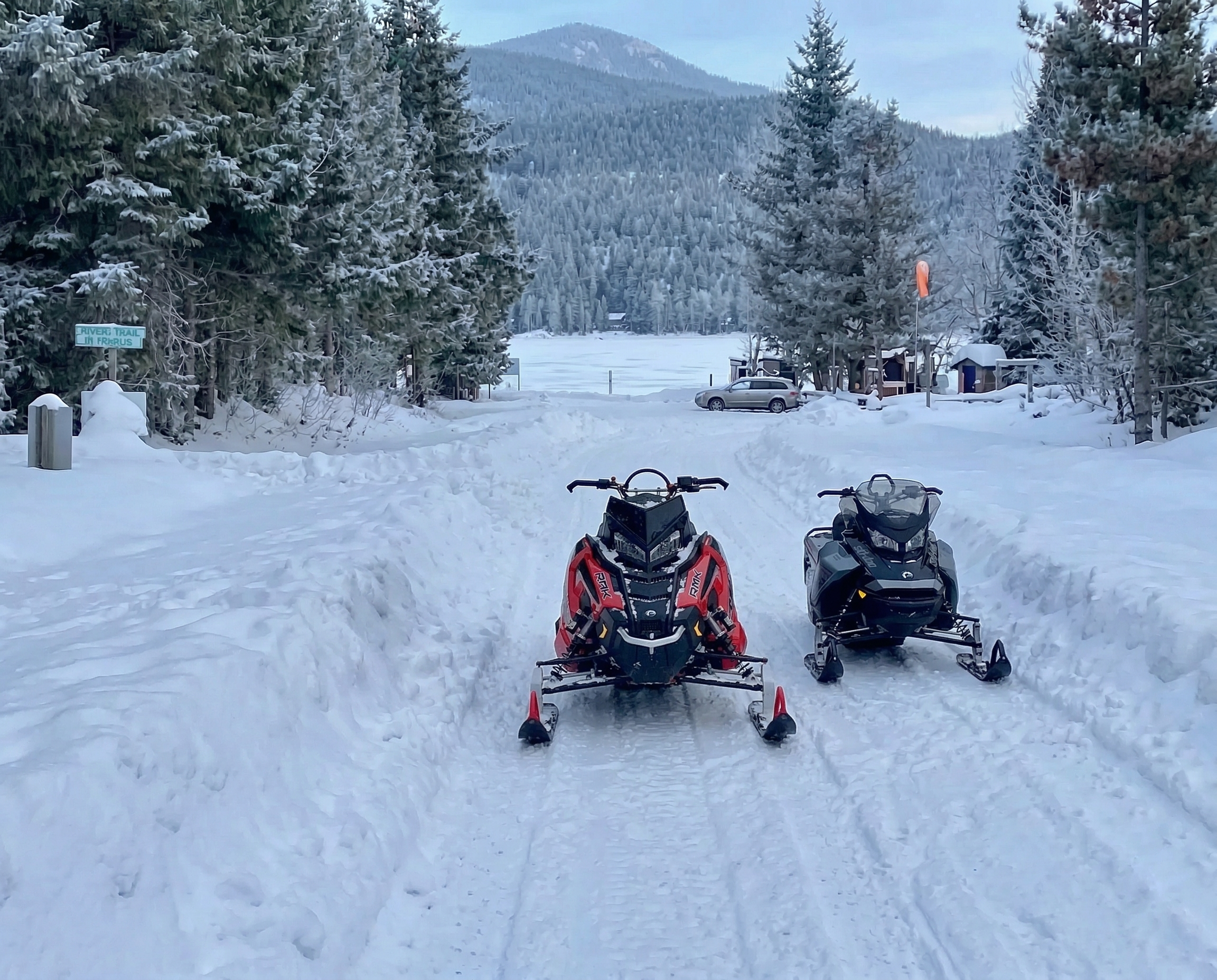 Snowmobiles replace boats, and the same backcountry opens up in a completely different way.